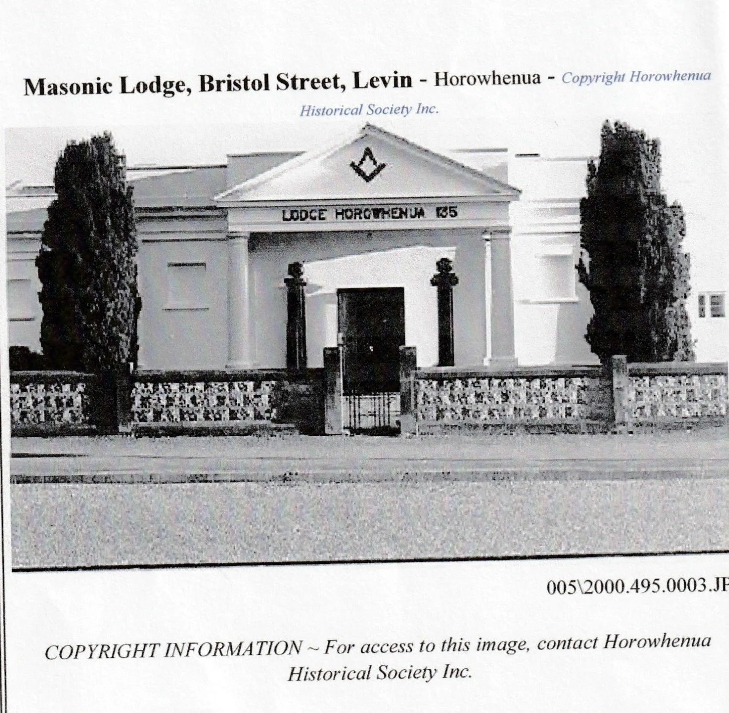 The Horowhenua Masonic Co Incorporated was formed in May 1974 to manage the Lodge Building on behalf of two Masonic Lodges being: Lodge Horowhenua No 135 and Lodge Levin No 386. Lodge Horowhenua No 135 was constituted in July 1904 being sponsored by Lodge Otaki No 72 and Lodge Levin No 386 was constituted in May 1955.